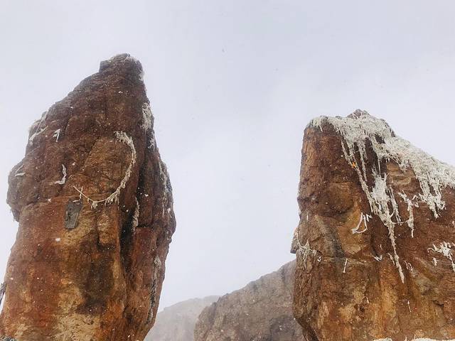 我们刚坐上车,我说这啥也没看到,好遗憾啊。后面那大哥一听,啥,没看到你们上车干什么,下一站就直接出去了。就开始劝我们下去,说这雪应该一会就停了,你们先下去等一会。想想也是,这走了6个多小时好不容易到了,什么都没看就到走了太遗憾,于是冒着雪又下了车。实在是没记住这大哥长什么样子,真的真的要谢谢他,不然我们就错过了这一路上最美的风景。