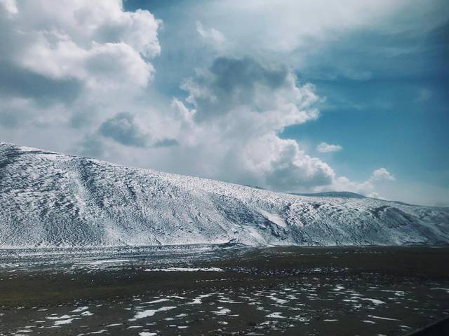 兴奋之后,她们一个个的都睡了。一个人守在窗边,期待看到不一样的风景。果然,路上看到了展翅飞翔的雄鹰,看到了田野里一闪而过的土拨鼠,还有不断变化的山川河流,直到大片的雪山映入眼帘,看了一眼地图,我们到念青唐古拉山了,而纳木错就在这山的背后,距离我这么的近。