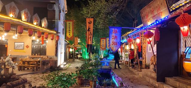 夜幕降临的时候,一定要去竹泉村的老街走走。