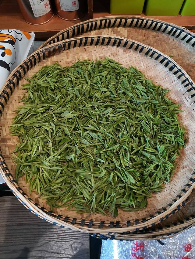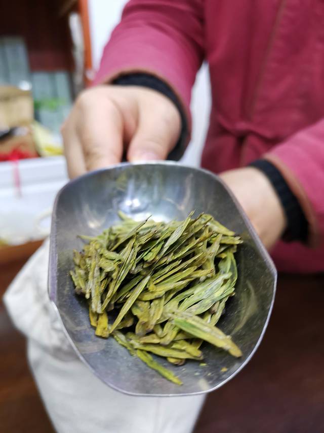 尝了下生茶,好苦,龙井叶片比我们碧螺春大了好多。
