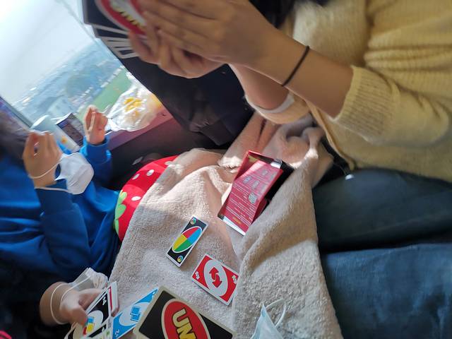 买了uno四个人在火车上开大,从规则还是研究起来,我竟然一句输了181分,创历史新高!!