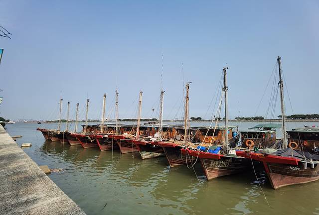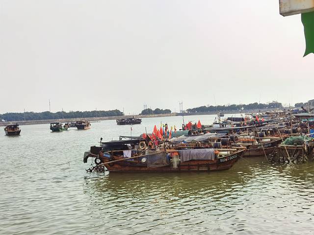 车子经过十九涌渔人码头的牌坊之后,道路两边都可以停车,这里停车位还是挺多的,还是免费停车。下车之后可以先欣赏一下河涌的风景,这条十九涌还是很宽的,很多渔船停靠在码头,河涌上面还有几种不同的鸟类在飞翔。海风吹过来,带着一股咸咸的海产味,虽说不上心旷神怡,但可以让你感觉到已经身处海边了。