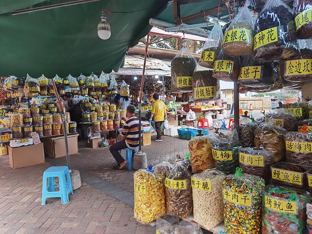 沿着涌边往前走就是一个很大的交易市场,有卖水果的、海鲜的、海产干货的、零食的......