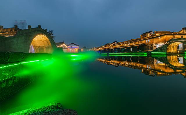 从大香林景区回来后,正值傍晚,在柯桥第一大镇柯桥古镇,欣赏到了一幕幕光与水的艺术佳作,在夜幕之下,摇曳生姿。