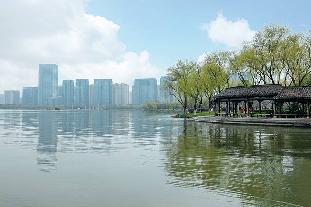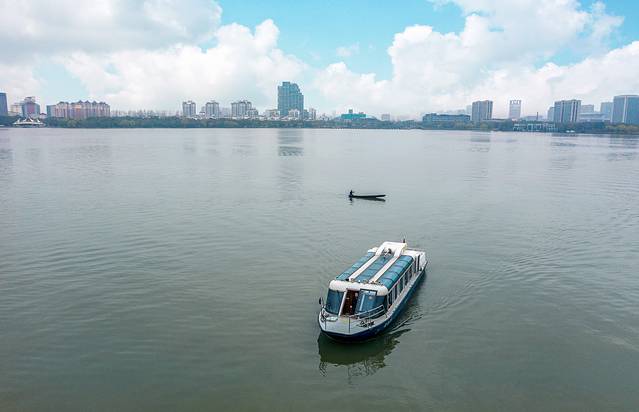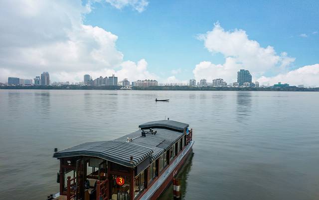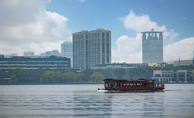 乘坐着水上巴士,荡漾在水平如镜的瓜渚湖之上,蓝天白云之下是鳞次栉比的高楼大厦,这座城市的淡雅气质是刻在骨子里的。