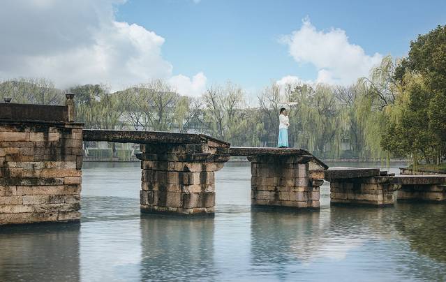 在古纤道之上拍照取景是一件非常容易的事情,本身就带着历史的气息,幽幽的湖水更是增色不少,若是在烟雨朦胧的日子里来,随手便是江南好风景,怪不得有许多的影视剧都会来这里。