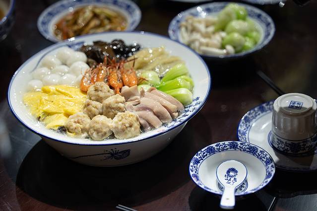 到了鲁镇,一定要尝一尝这鲁迅家宴,浙江物产丰富,有着鱼米之乡的美称,在吃食方面也是独具特色,很是讲究。这碗满满的绍三鲜,由数十样食材烹饪而成,口感丰富,鲜而不腻,非常好吃。