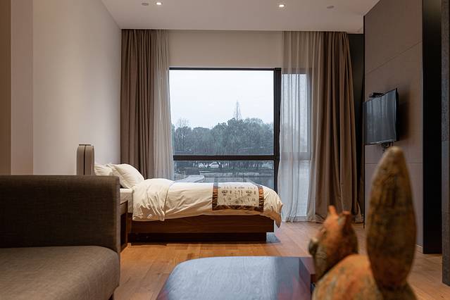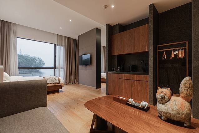 酒店里到处都有可爱的猫咪元素,优雅而俏皮,拉开窗帘便是鉴湖的好风景。而更让我惊喜的是房间里还有地暖、智能马桶等一系列高端设备,居住体验满分。