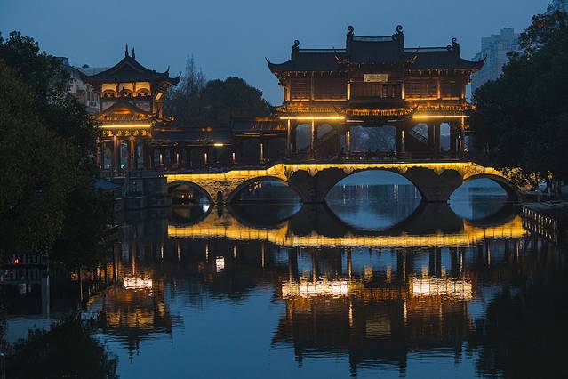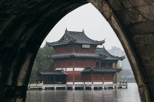 建于明朝万历四十八年的太平桥已经有四百多年的历史,气质独绝的待月楼屹立在水面之上,歇山顶的屋顶,让它也成为了太平桥公园的标志性建筑之一。