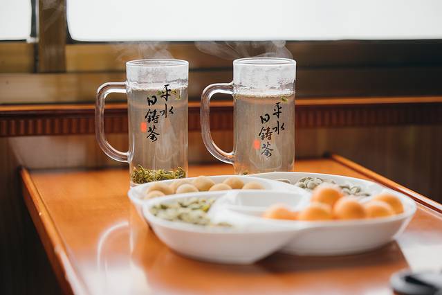 茶气氤氲,散发着淡淡清香,轻啜一口,温暖的茶水让整个身心都十分舒服,或是与朋友闲话家常,或是欣赏着船外的风景,怡然自得,时光不由得变慢了。