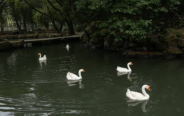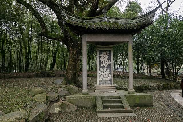 进入景区,第一个景点就是鹅池,清幽静谧,白鹅浮水,好不惬意。因为王羲之爱鹅,养鹅,而碑上的“鹅池”二字是由王羲之王献之父子分别书写,也成了一段佳话,有着“父子碑”的称号。