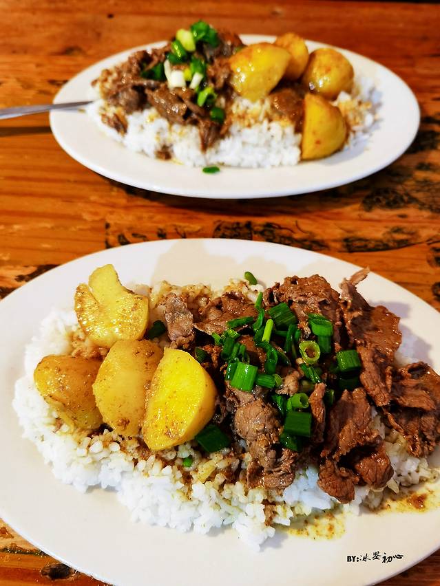 这就是超姐美味好吃的咖喱土豆牛肉饭啦,而且有摄像头对着厨房,看着都干净卫生,才20块哇,在西藏这个物价这么这么贵的地方,简直就是白菜价。雪全全吃光,我剩一丢丢饭。