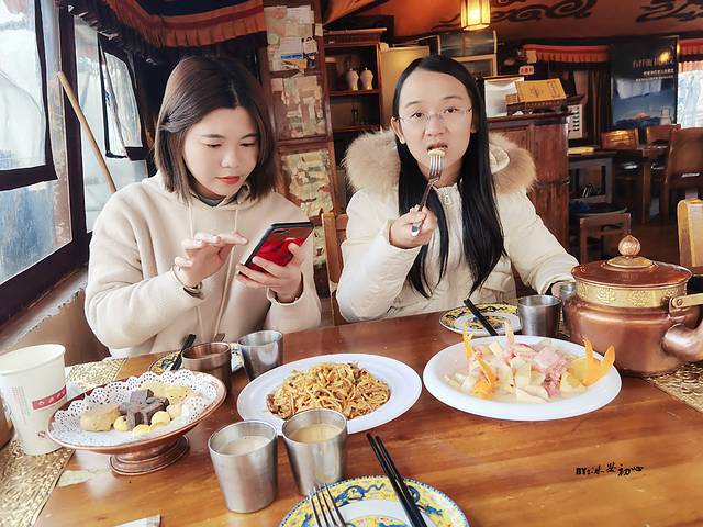 我们问了小姐姐这边有什么好吃推荐的,她带我们过来这家店,在玛吉阿米那个巷子过去一点,从外观根本就看不出它是个吃饭的地方。她推荐我们吃个咖喱土豆牛肉,我要不辣,雪是正常,敲重点,价格超级亲民,20元一份,还好吃,我两都觉得是来西藏吃得最好吃的一顿。想起我们在波密曾经点的一个清汤面,清汤面都要18.5元,卡文吐槽那个15元一碗的肥肠面好歹也有一片肥肠。