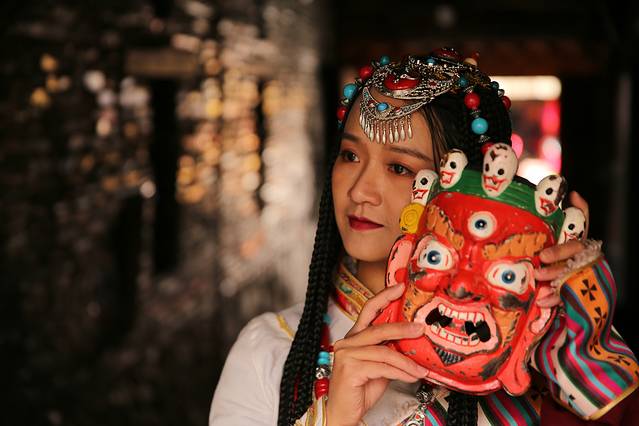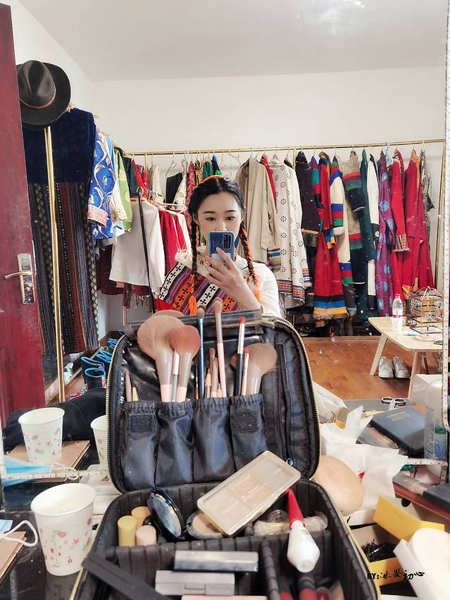 拍完藏装我们都没有卸妆,不能浪费这个藏式妆容不是莫。