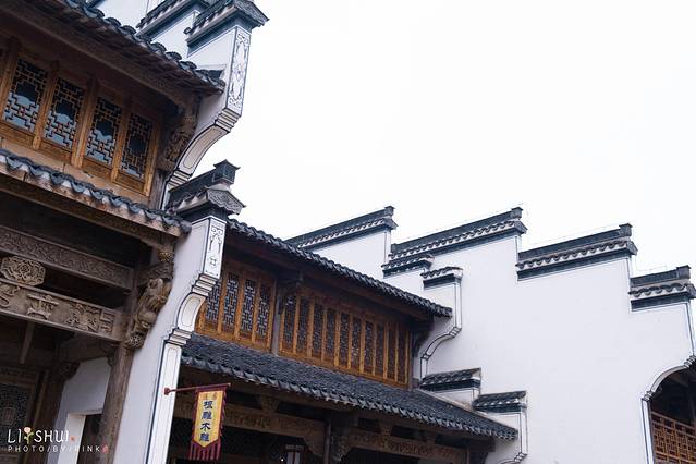 白色的墙,深色的黛瓦,古色古香的马头墙,倒映在水中,如梦如幻。