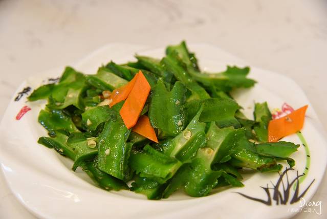这盘菜竟然是绿色的,绿色粉末是秋葵,味道清淡,刚好突出排骨的肉香,吃着绿色的肉,感觉是很神奇的体验。