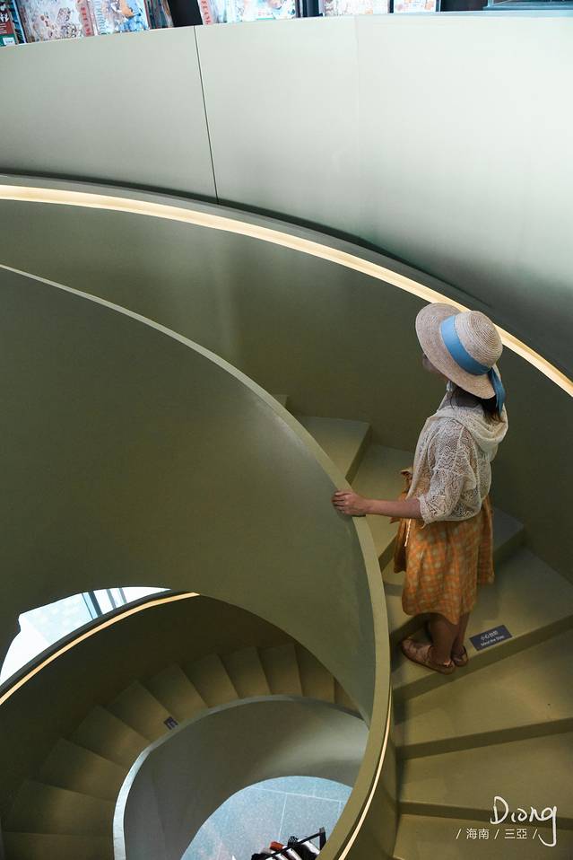 楼上是卖服饰的,居中有一个浅绿色的旋转楼梯,再上楼是儿童阅读娱乐区,旋转楼梯也是一处很适合拍照的好地方。