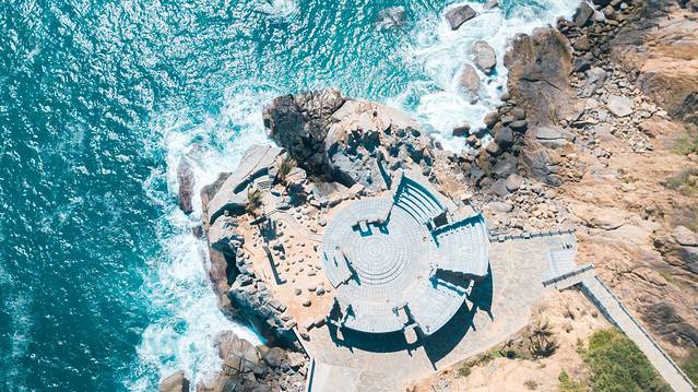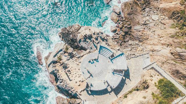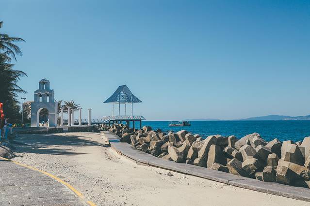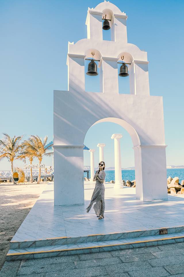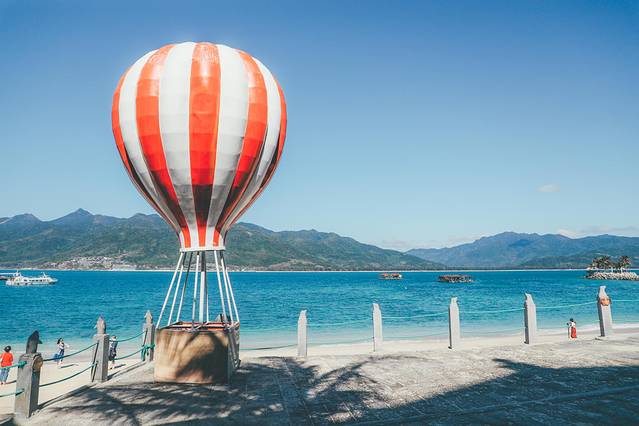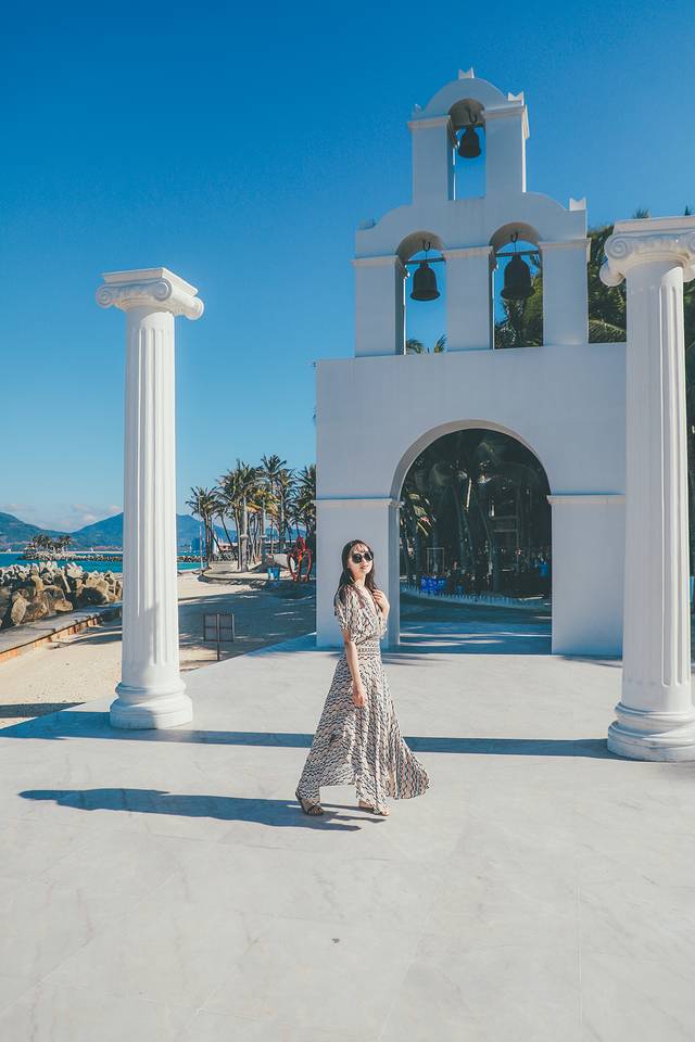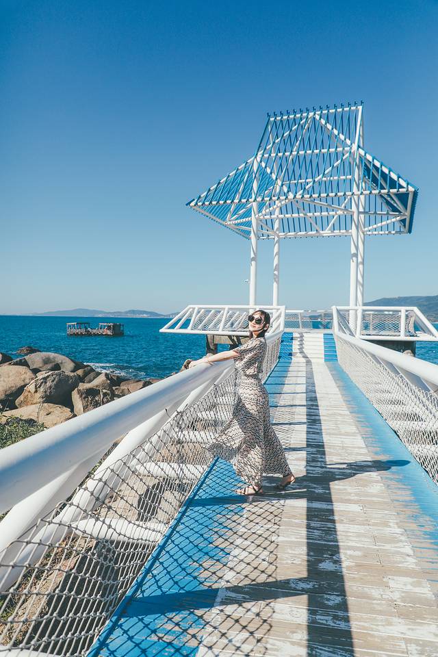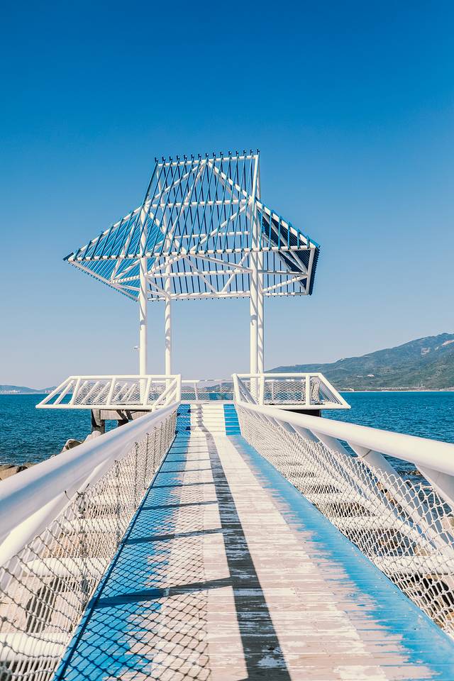 1⃣️初见亭/海景亭🏛:2号线观光车到热气球位置,下车往前走几十米就到,亭子延伸到海面之上,蓝白的颜色特别像 希腊 的配色。