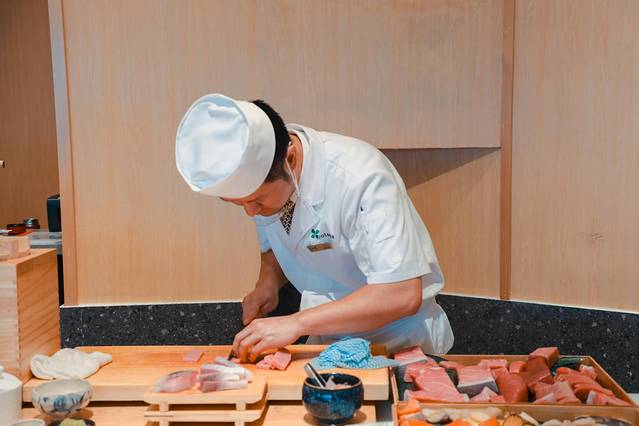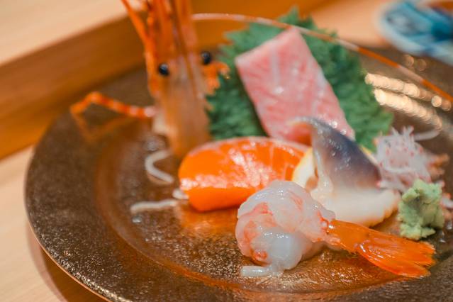 🦐刺身:这里的重头戏就是刺身拼盘了,我们坐在了寿司吧前,现吃现做,看着专业的大厨选品、制作、摆盘、装饰,真的视觉上也是一种享受~刺身的味 道真 的就更没得说了!牡丹虾肉质细腻入口清甜,真的是我吃过最最最好吃的刺身了!完全对得起这个价格,金枪鱼鲜嫩弹牙,非常新鲜! 北极 贝非常的Q弹,能感觉到和其他店的冻品口感差别很大,只能说在品质方面真的没话说~