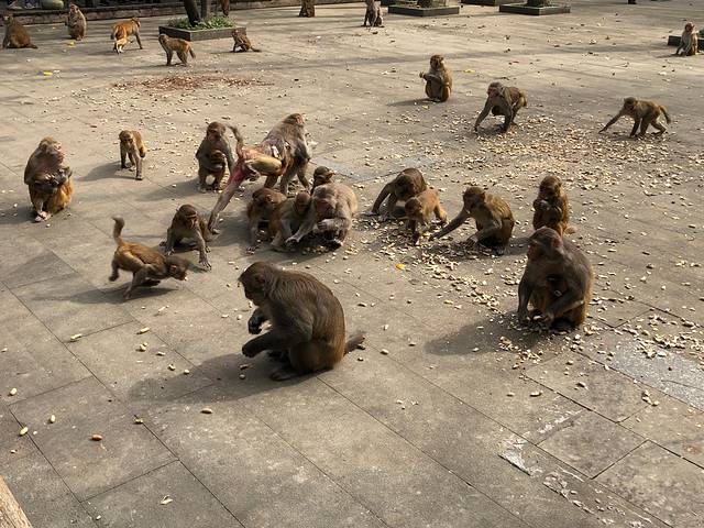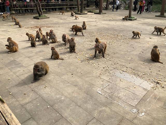 岛上有很多猴子,这里的猴子的确很生猛,经常抢食,还打架,可以喂食拍照。另外,我们还花25元/人买了门票观看了杂技小剧场,不看也行,可以在外面随便逛逛。