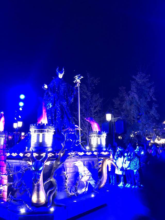 万圣节特别场,是万圣节那段时间才有的,也是绕着主道路,一路上都有得看,站着主路旁边就能看完整场巡游,大概是40分钟左右。