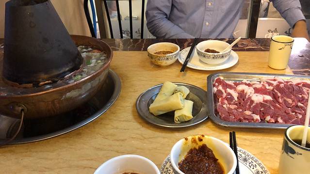 这家店是我们早上途经看到有人在切羊肉,我们就说要不今晚试试,没想到是上海老牌羊肉火锅网红点,很多年历史,感觉很有年代感,加上人真的很多,我们来到只剩下一张桌了,还是在角落,羊肉的份量真的挺足,喜欢吃羊肉的可以来吃,不过这里的辣椒不是我们平时吃的辣椒酱,是偏咸的酱料,啧啧啧……吃不惯,芝麻酱是特制,可以试试