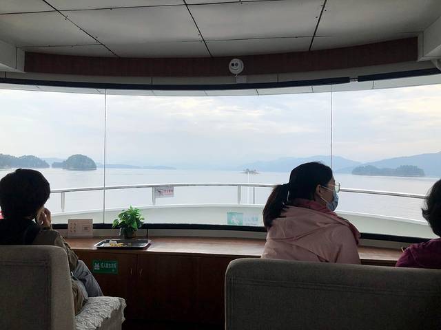 之前就提过,千岛湖景区的门票是包括两个景区,所以今天来东南湖区只需交10元手续费以及65元/人船票就可以继续游玩了,但是我们也想随意走动,也加了33元/人升了船舱,是直接在船上扫码给工作人员,选择好了位置不能随意变更,船舱前头的位置最好,早选早好,所以一共是108元/人。