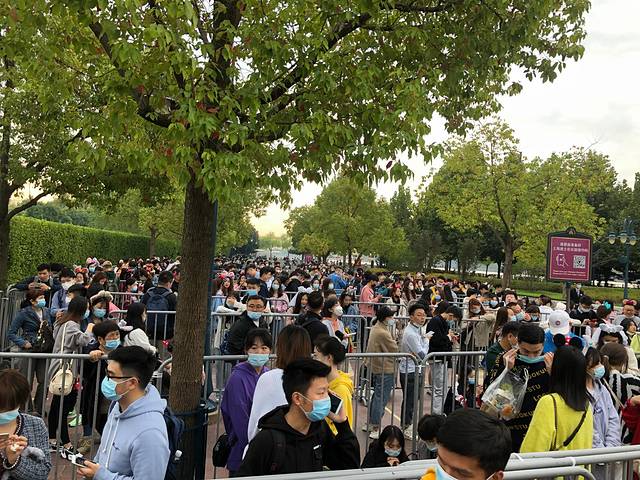 导游服务让我们早上6:40到迪士尼门口,我们是5:30起床的,6:15分我们就出门口,到了迪士尼门口,还要走很远的栅栏,6:45到了排队的地方之后我们应该是第一批,前面只有20个人左右,结果一搜,居然要8:20才开园,我内心是崩溃的。到了7点半之后,我们身后已经是乌泱泱的人群,早到还是有好处,除了累。