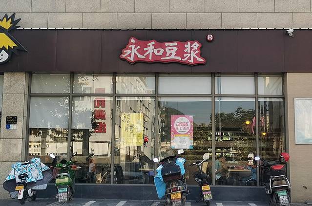 永和豆浆店,规模蛮大的,早餐的理想去处,门外的停车场很宽敝