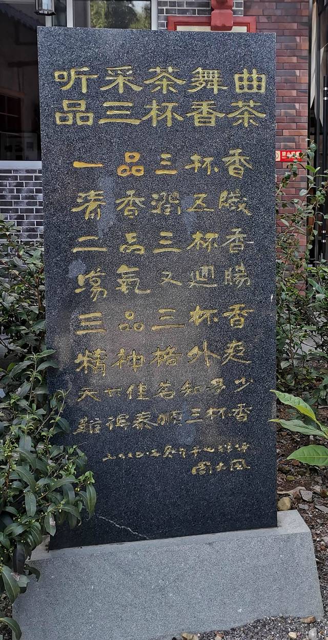 院内,耸立着著名音乐教育家、作曲家周大风先生82高龄那年在岭下村写下的《三品三杯香》石碑。周大风先生1958年在泰顺境内创作了影响力甚广的《採茶舞曲》