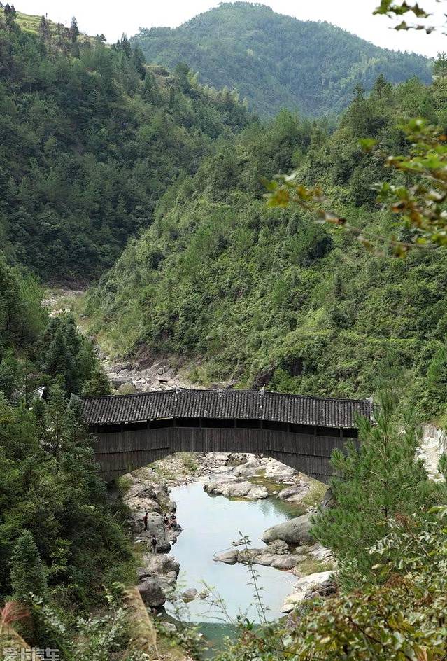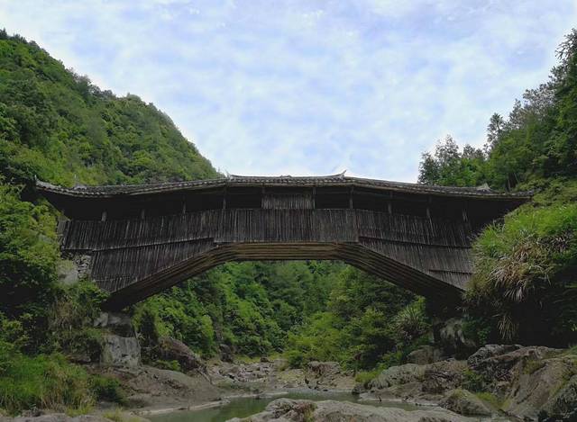 三条桥,就这么静静地躺在这深山峡谷间,任凭风吹雨打,一躺就是900多百年,朴实得像一位洗尽铅华的妇人,褐色的板木为衣,青瓦为帽,掩不住那曾经娇美的容颜