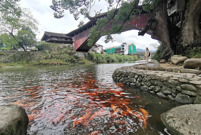 文兴桥造型独特,结构奇异,桥身左右不对称,和周边的山水融合显得天衣无缝