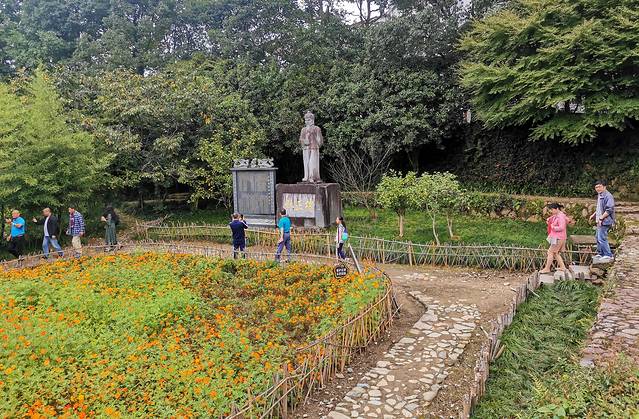 国庆长假已过,依然有不少游客,这是他们绕过桥旁的花田走向桥下