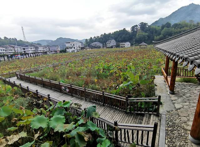 清风长廊与百亩荷田遥相呼应,花期虽过壮观犹存