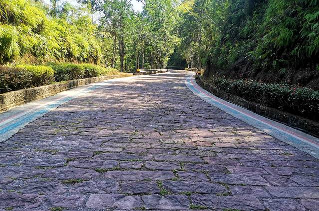 每齿石磴分高低两层,高层石材用花岗岩,低层石材用青石岩,高低两层设计利于行人交汇,双色石材的使用便于夜间辨认行走