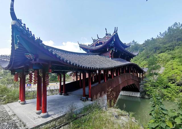 永庆桥,位于三魁镇战州村下溪坪自然村,始建于宋,重建于清嘉庆二年(1797年),为伸臂式木廊桥,桥墩青石砌筑,全长33米,宽4.5米,离水面高8米