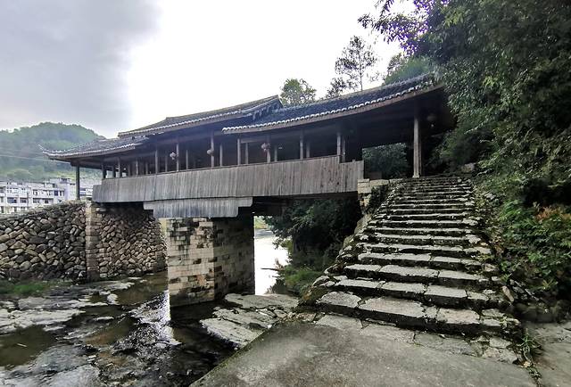 溪东桥,与北涧桥互称为姐妹桥,叠梁式木拱廊桥,建于明隆庆四年(1570),位于泗溪镇白粉墙村