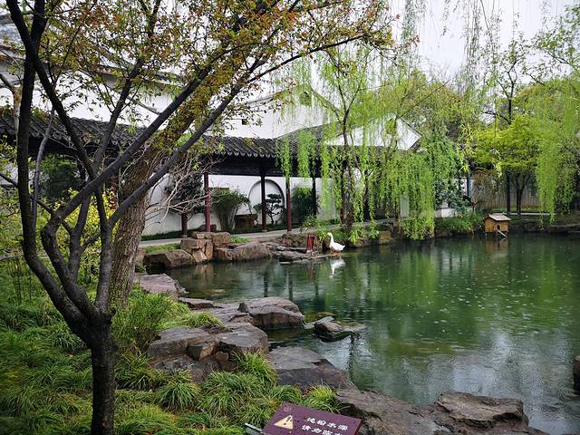 移步它的对面可园,这是一座旧时的学堂,首先印入眼帘的便是哪一拱小桥,万条垂柳,一座古堂和一池湖水,湖中一对鹅和一对鸳鸯游戏与其中,这不正是哪画中之景吗,记得先前画过一幅手抄,其的的鹅便被多人“嘲笑”。正在此刻忽听古琴之声,天哪这是何等有幸,一切的美都在此时被浓集,一切的赏心悦目都已刻入此景。实在惊人之处更是来了一阵蒙蒙细雨,你能想像这是一种什么样的画面吗?雨声、琴声、风声是大自然的一首交响曲。我的脚也无法自拔……