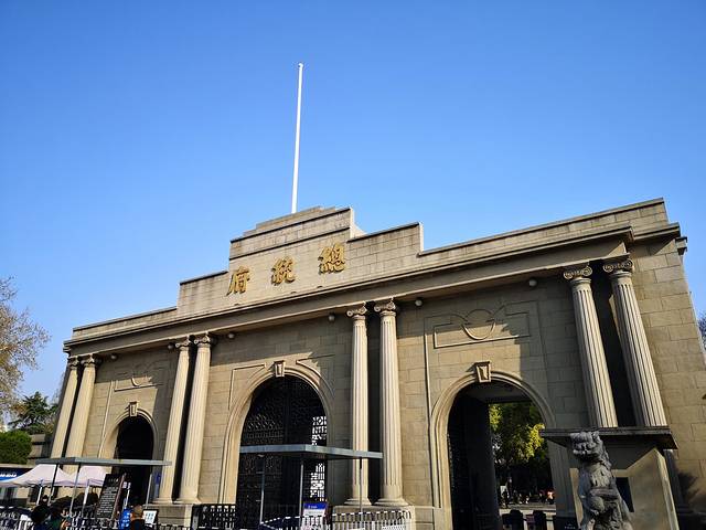明朝初年的汉王府,康熙六下江南,四次居住在当年的(汉王府)江宁织造府;孙中山“天下为公”的横匾悬挂于大堂正中,民国的风云之变在这里上演,蒋先生、李先生分别当选总统和副总统后,国民政府改称总统府;导游讲到蒋先生的办公桌斜的放置,是因害怕被暗杀,但具亲眼所观,这样的斜置似乎更易于被发现。此处共分三个参观区域。中区(中轴线)主要是国民政府、总统府及所属机构;西区是孙中山的临时大总统办公室、秘书处和西花园,以及参谋本部等;东区主要是行政院旧址、马厩和东花园。导游没带去东区,甚是遗憾。这里的建筑既有中国古代传统的江南园林,也有近代西风东渐的建筑遗存。