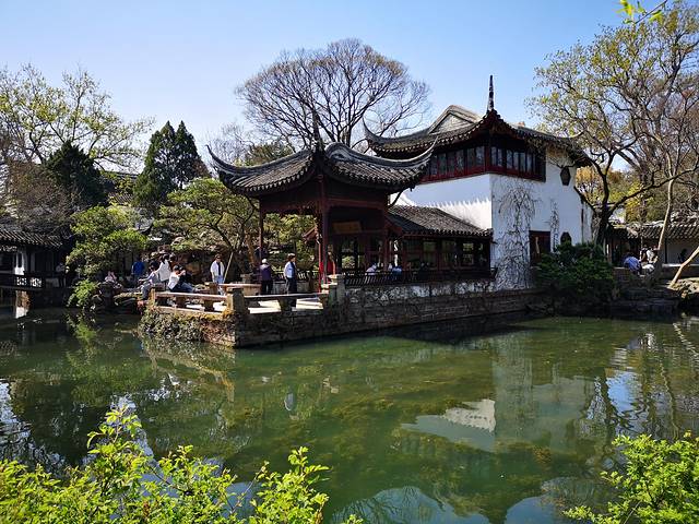 拙政园江南古典园林之代表,几经易主,但仍不失其优与雅,与其比邻的便是苏州博物馆、苏州园林博物馆以及繁华的闹市平江路,平江路上各色店铺林立,路窄而而有序,但因有一段在修路,故失了几份清静,一条小河流淌而过,一叶扁舟荡于其中,女船夫沙哑而纯朴的歌声萦绕河岸。