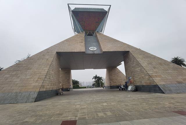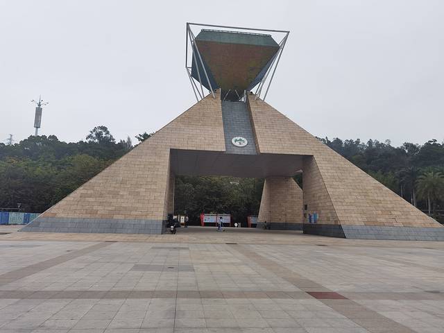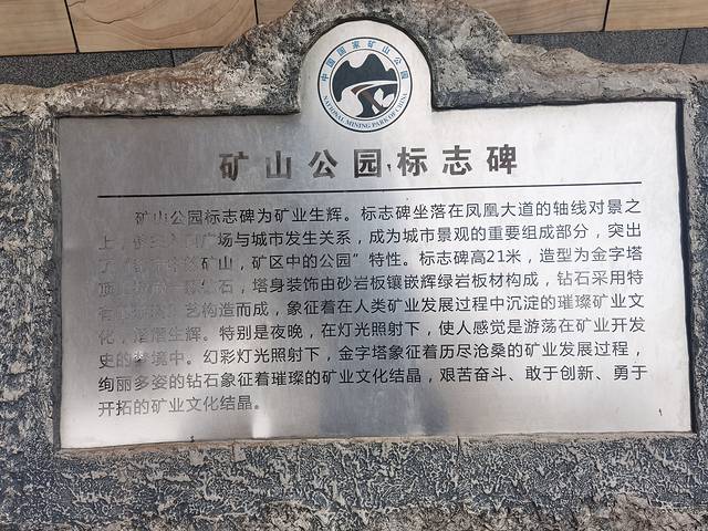 从远处眺望,一座钻石塔高高耸立在迎宾广场上。“金”字形的塔身由砂岩和辉绿岩板材装饰而成,足有二十多米高,显得雄伟气派。塔顶上镶嵌着一颗硕大的钻石,在阳光的照耀下闪闪发光。钻石塔蕴含“矿业生辉”之意,因此成为矿山公园的标志性景点。