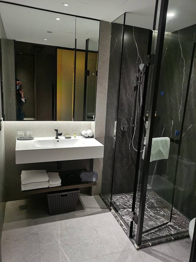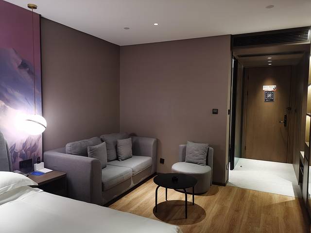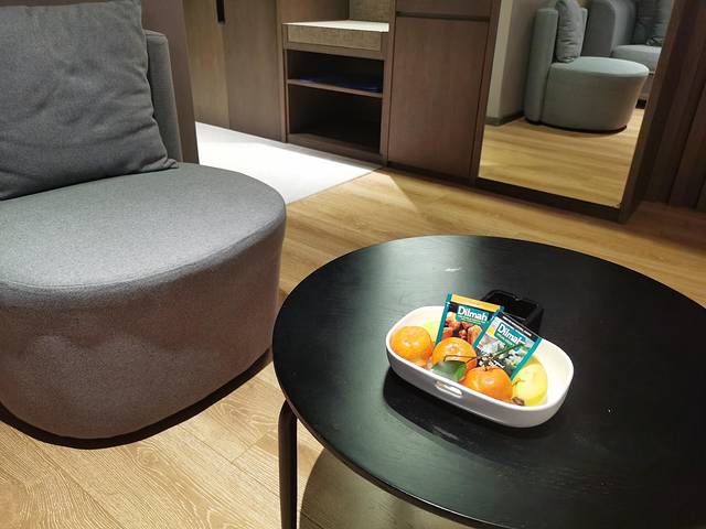 跟着导航走,奇怪,为啥一直显示我越来越远???什么鬼导航,一个人拉着行李,明明只要6分钟的路程,找了半小时终于找到酒店,前台办理入住,酒店前台告诉我,因为我来的太晚,只剩下电梯口的房间了?什么,哎,好吧,因为要累瘫了。进到酒店很惊喜,酒店物有所值,干净卫生,还很贴心的给了欢迎水果,是机器人配送哦~