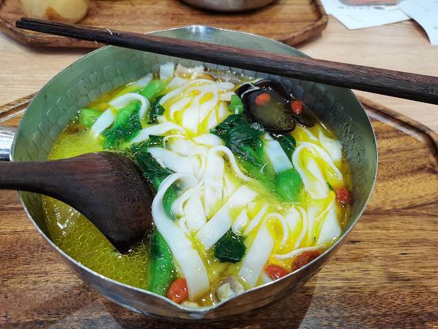 看完灯光秀,满足的去找吃晚饭的地方,还是一样的某众,找到杭州来福士店的“小满手工粉”,点了枸杞菌子土鸡汤粉,汤底真的好喝,粉口感也不错,是会想吃第二次的粉店~