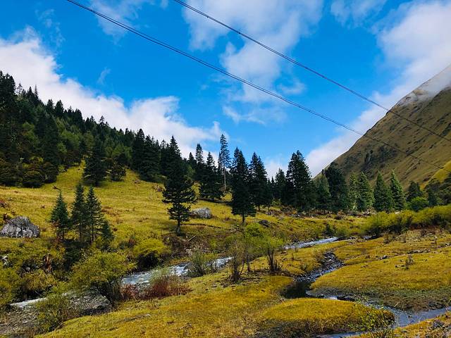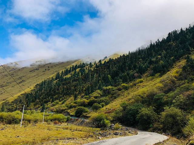 很长一段路(约1个小时),两旁都是挂满松萝的大树,只听得见水流声,还有高高低低的灌木丛,感觉路面都要长苔藓,有记录片里原始森林的既视感。穿出森林,再往前出现高山草甸,色调从深绿变成黄绿,像油画中异域风光,让人赞叹不已,全身心的去体验,自然与我之间无它。