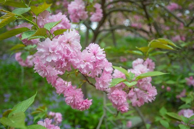 因为下着雨,又是工作日的缘故,景区里游客不多,但是风景确实格外好看,大片的樱花绚烂多彩,让人目不暇接,有种人在画中游的既视感。