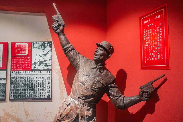 步入景区,首先游览的是纪念馆区域,在这里一边聆听讲解员慷慨激昂的讲述着红色经典故事,一边通过文字、雕塑、图片,追溯那个悲壮的年代。