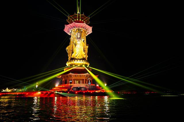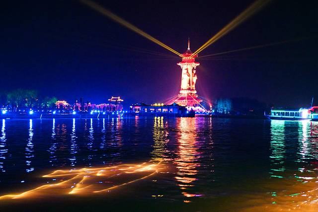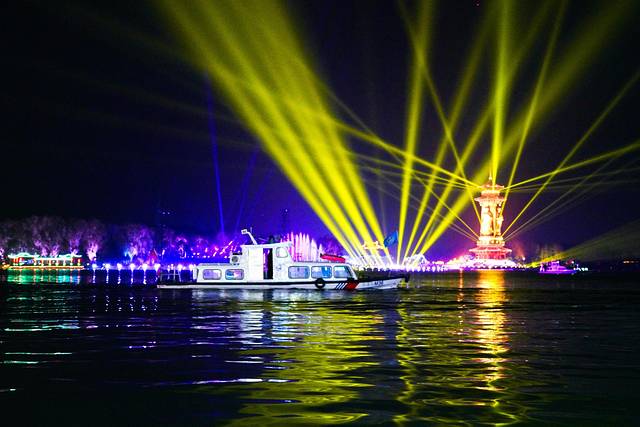 当山寂了,水静了,灯火起,游船码头歌舞升平。万千姜堰民众期许已久的“夜游溱湖”终于问世了。一场以“一梦到溱湖”为主题的灯光演艺秀,弥补了溱湖“空寂”夜晚,让旅人们拥有了新奇的旅游新体验,为姜堰增添了一道靓丽的风景。