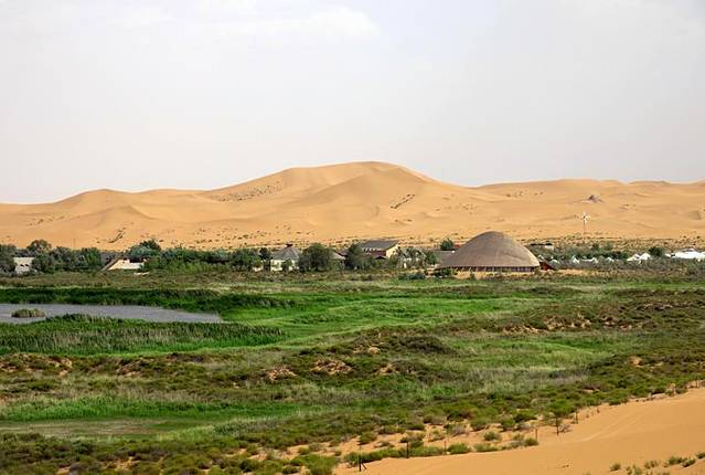 腾格里沙漠中还住着一些牧民,不过他们的聚集点都非常分散,就像大漠中的一点烟火。