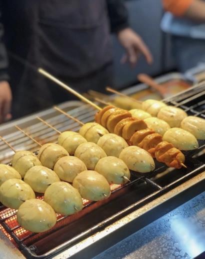 西北的烤面筋都是很大串,吃一串就半饱了,随便在夜市上找一家买,味道都可以。