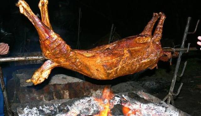 夜幕下的烤全羊